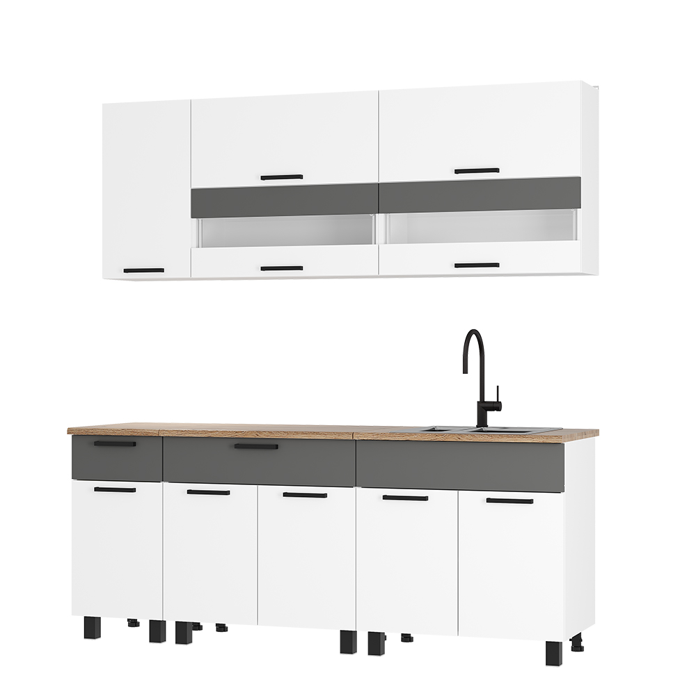 Кухонный гарнитур Монтана 2000 мм белый/графит (БТС) в Арамиле - aramil.mebel-e96.ru