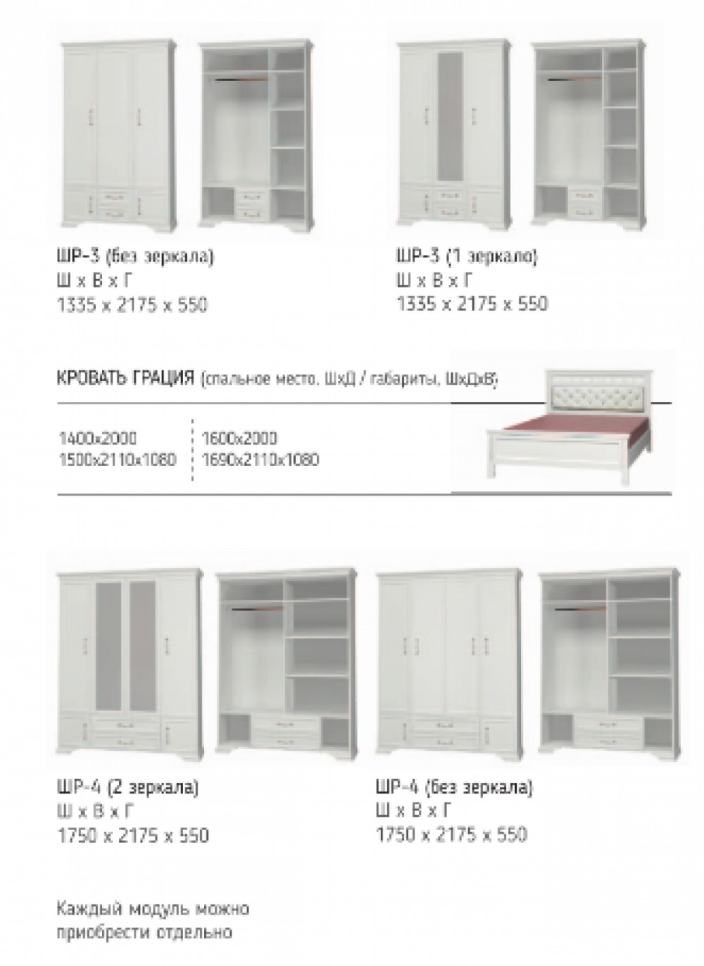 Шкаф 1700 мм ШР-4 без зерк.. ГРАЦИЯ (лак) Белый/Белый (БМ)